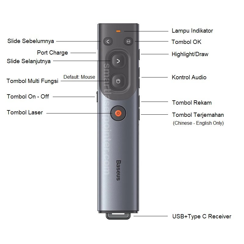 - Teknologi MultiFungsi yang dapat disesuaikan pada perangkat: Kontrol Mouse, Digital Laser, Spotlight, Zoom